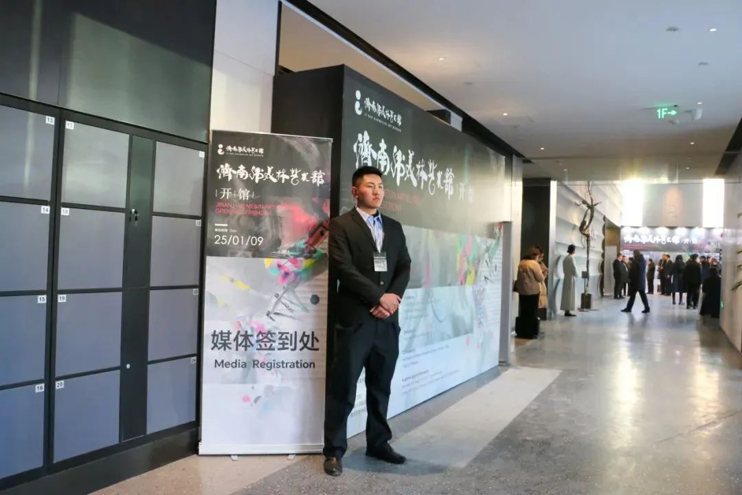 本次活动规格高、影响力大。活动前期,振邦保安配合公安机关、活动承办单位等多次现场踏勘,对现场的展位施工、嘉宾通道、安保设置、周边环境、消防设施、证件查验等进行全面检查和风险评估,确保开馆系列活动平稳安全有序。市公安局二级警务专员刘西茂,治安支队支队长段富勇,治安支队三大队大队长王成及市公安局相关任务单位、历下公安分局相关领导现场督导安保工作,集团副总裁景元兵陪同。
