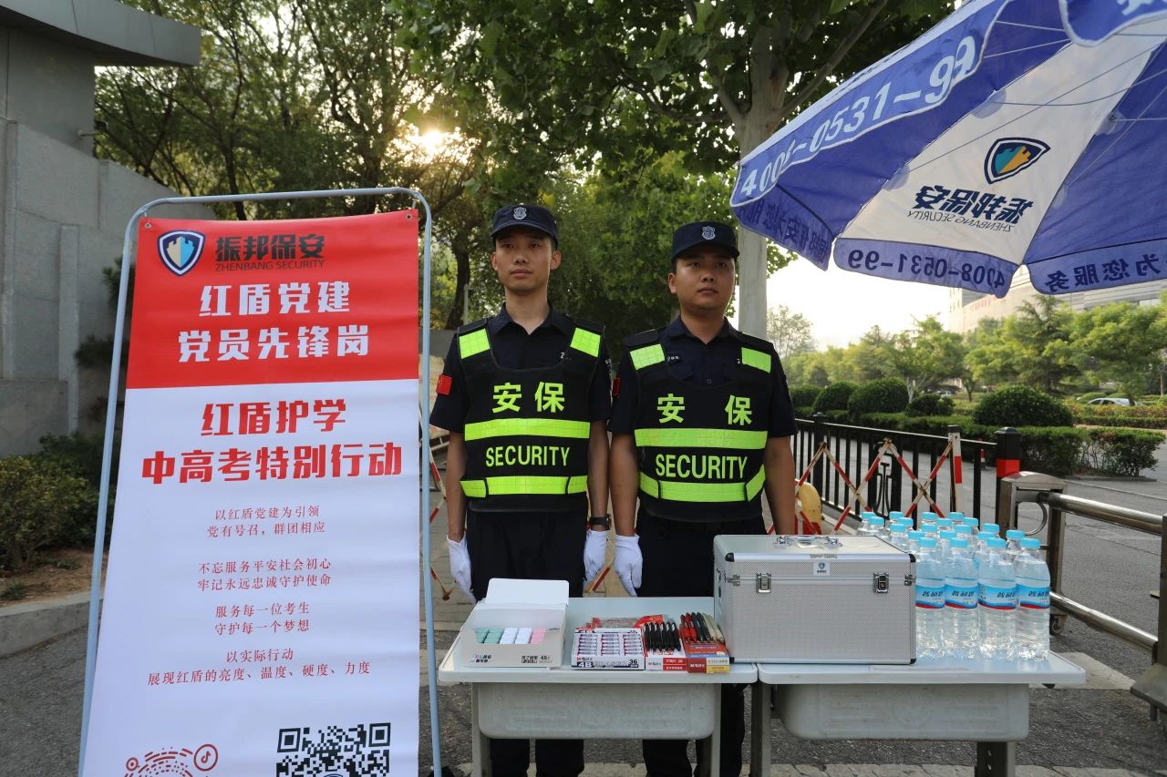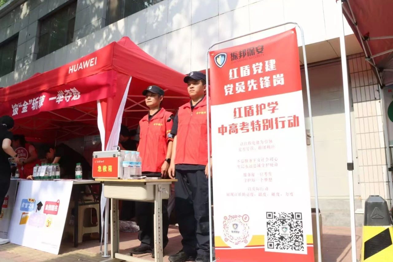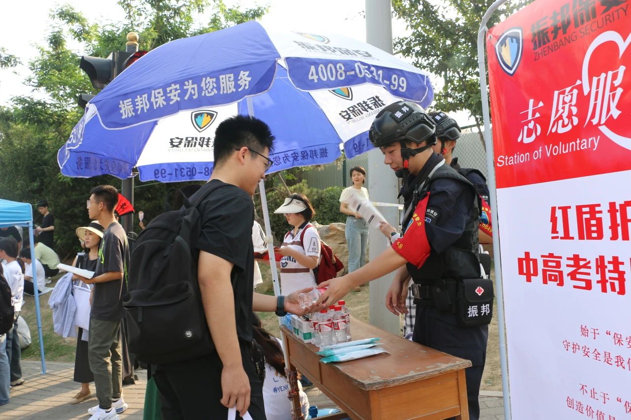 在坚守岗位的同时,保安员积极为学生和家长排忧解难,耐心解答各种疑问,还贴心准备了考试用品、解暑饮品、外用药品,让安保服务既有力度更显温度。