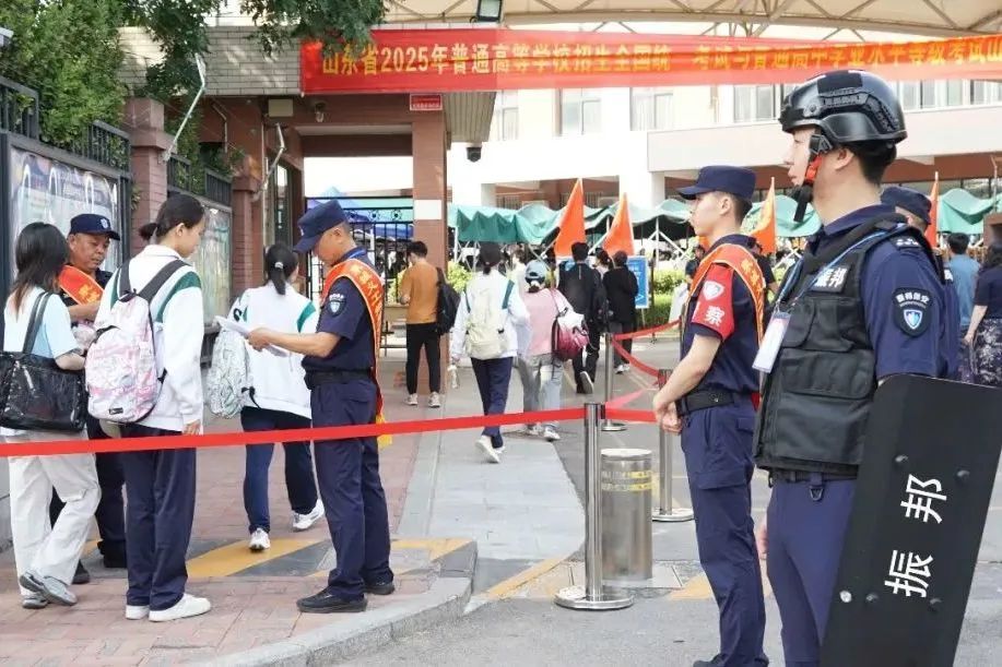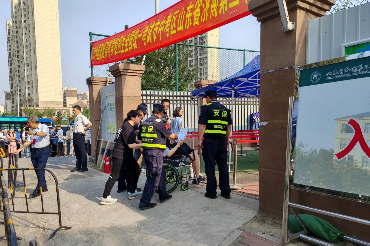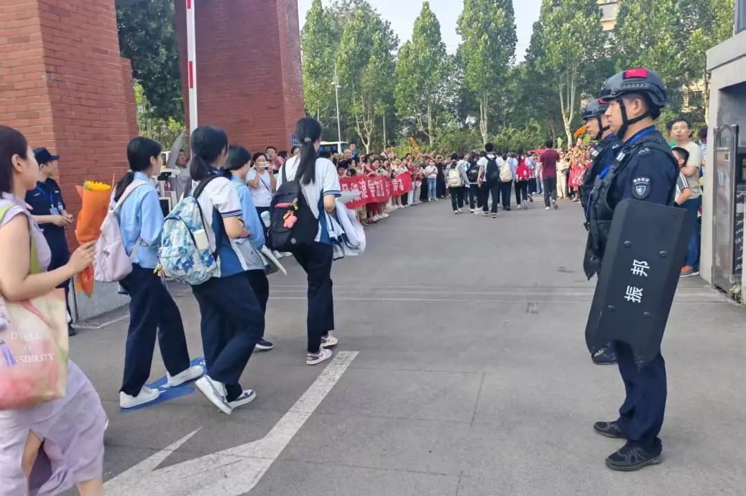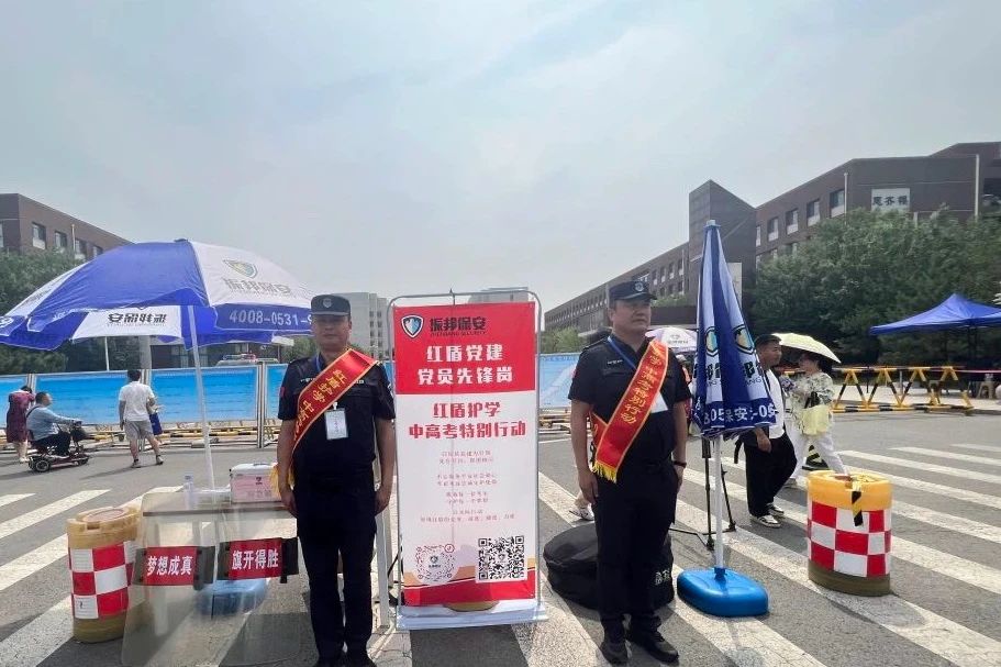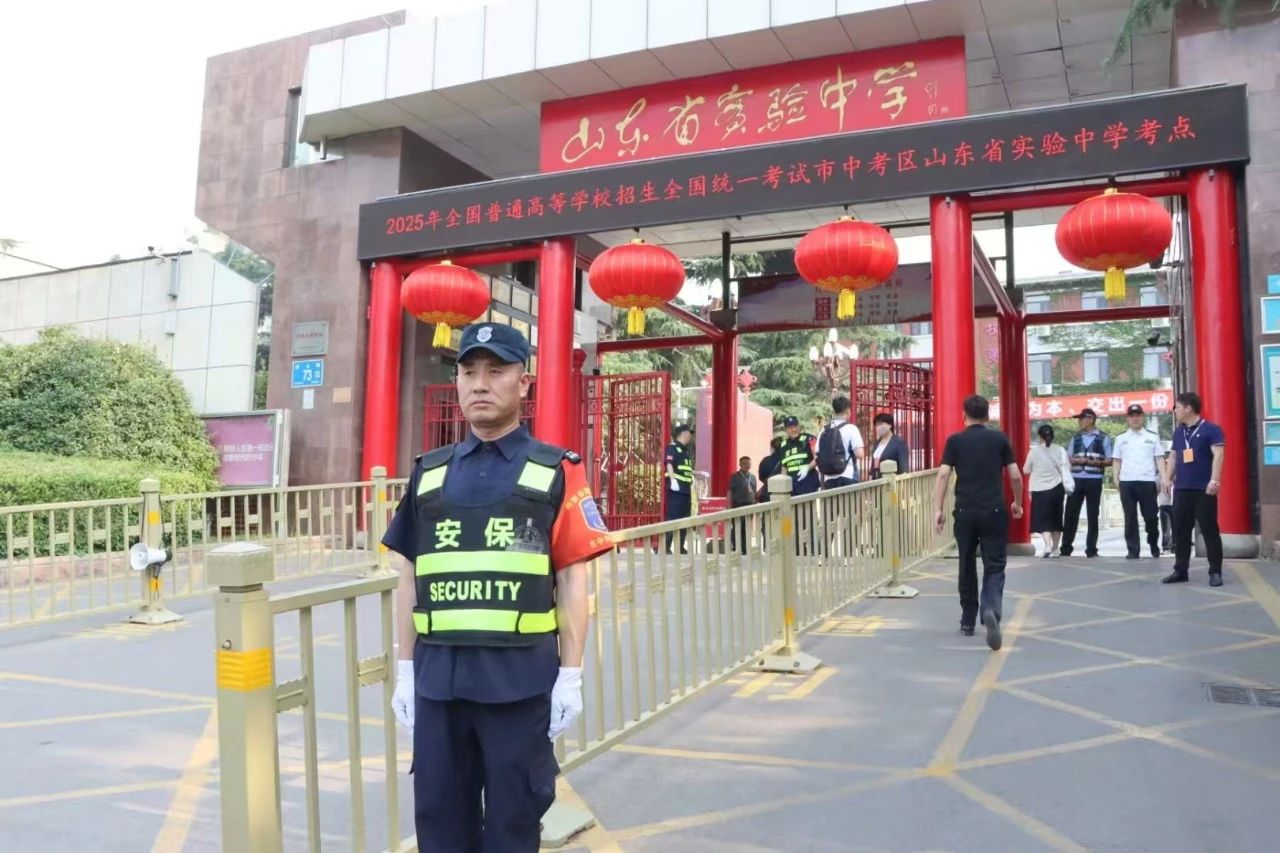 在坚守岗位的同时,保安员积极为学生和家长排忧解难,耐心解答各种疑问,还贴心准备了考试用品、解暑饮品、外用药品,让安保服务既有力度更显温度。