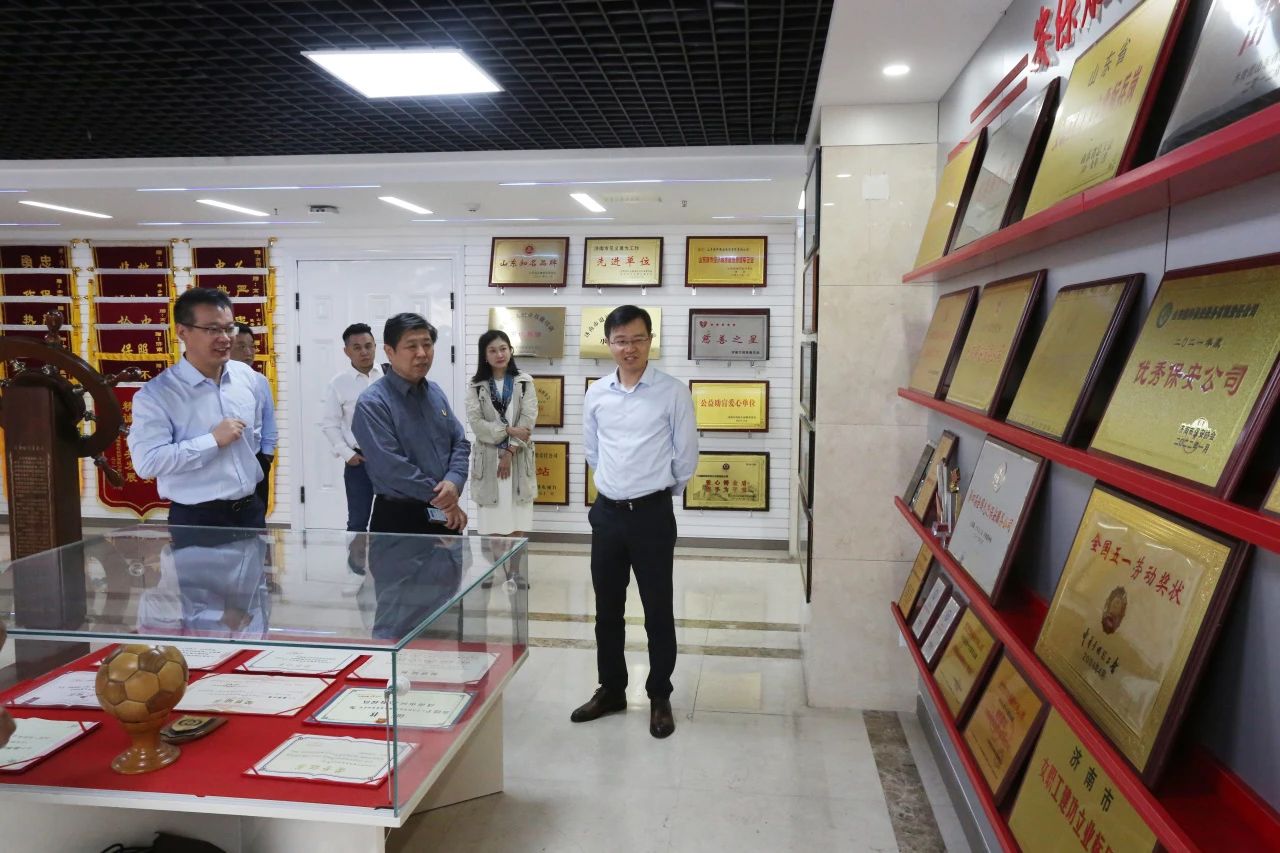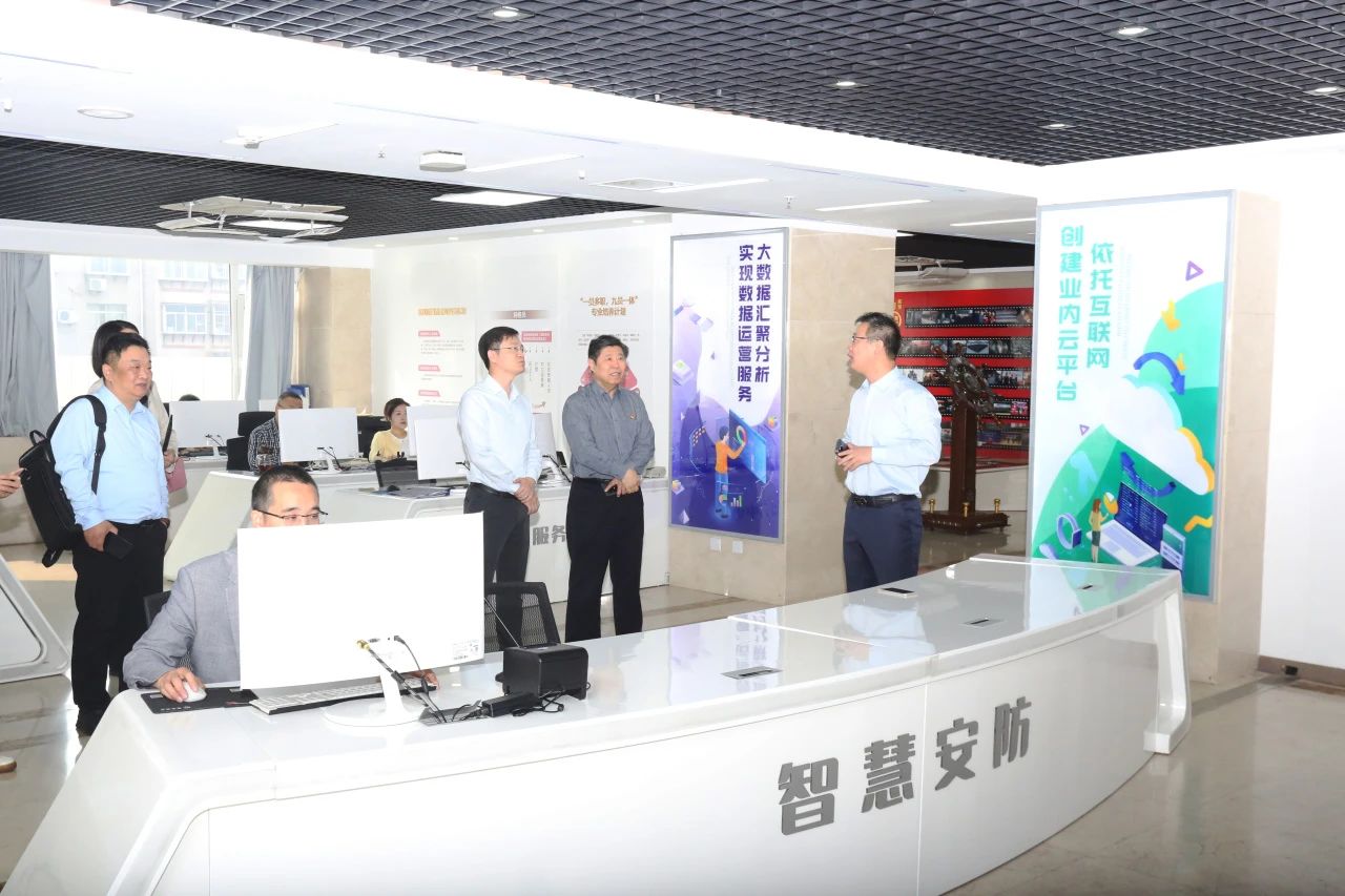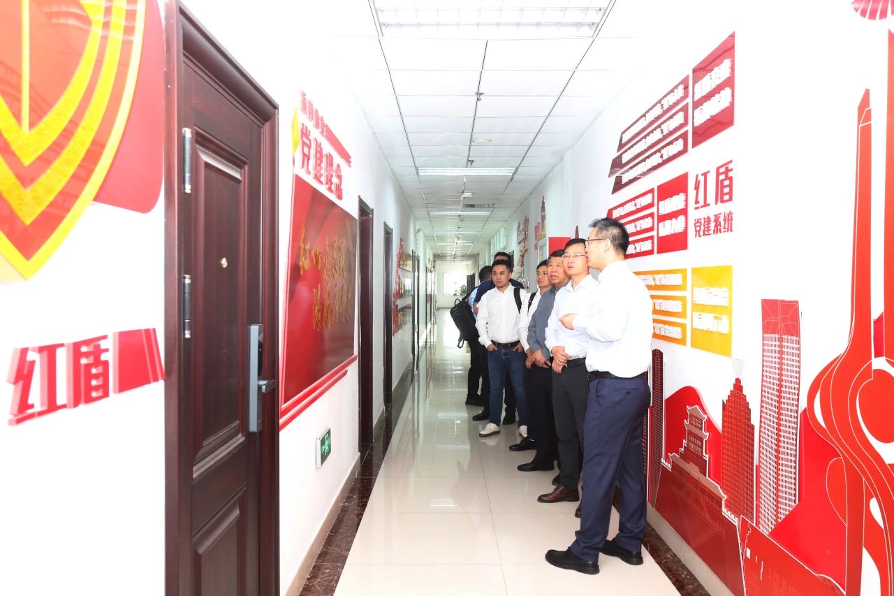 领导们先后参观集团智慧安防研究院、荣誉室、党建阵地、企业文化长廊,深入了解集团智慧安防研发、红盾党建品牌建设等成果及集团发展历程。