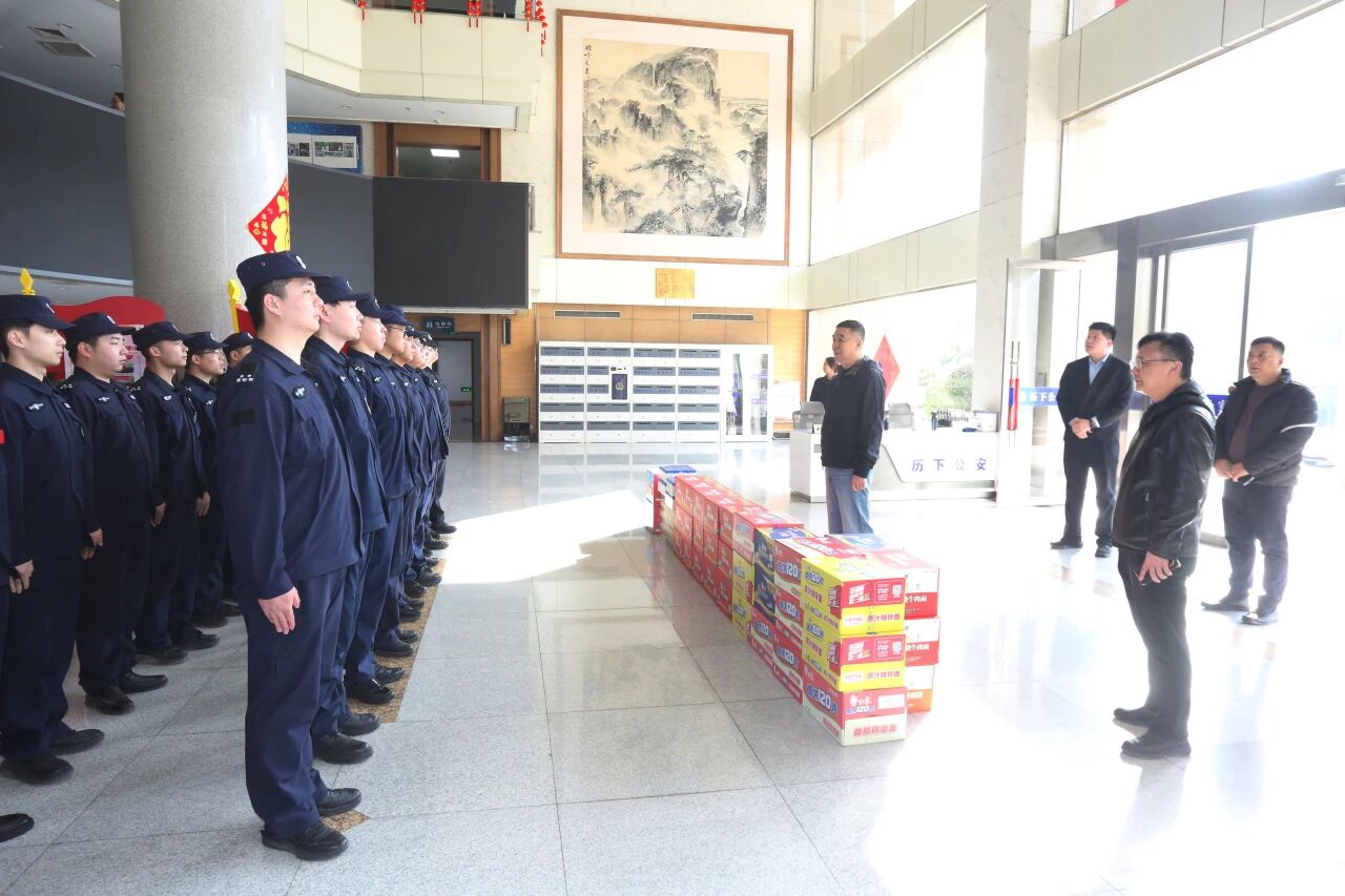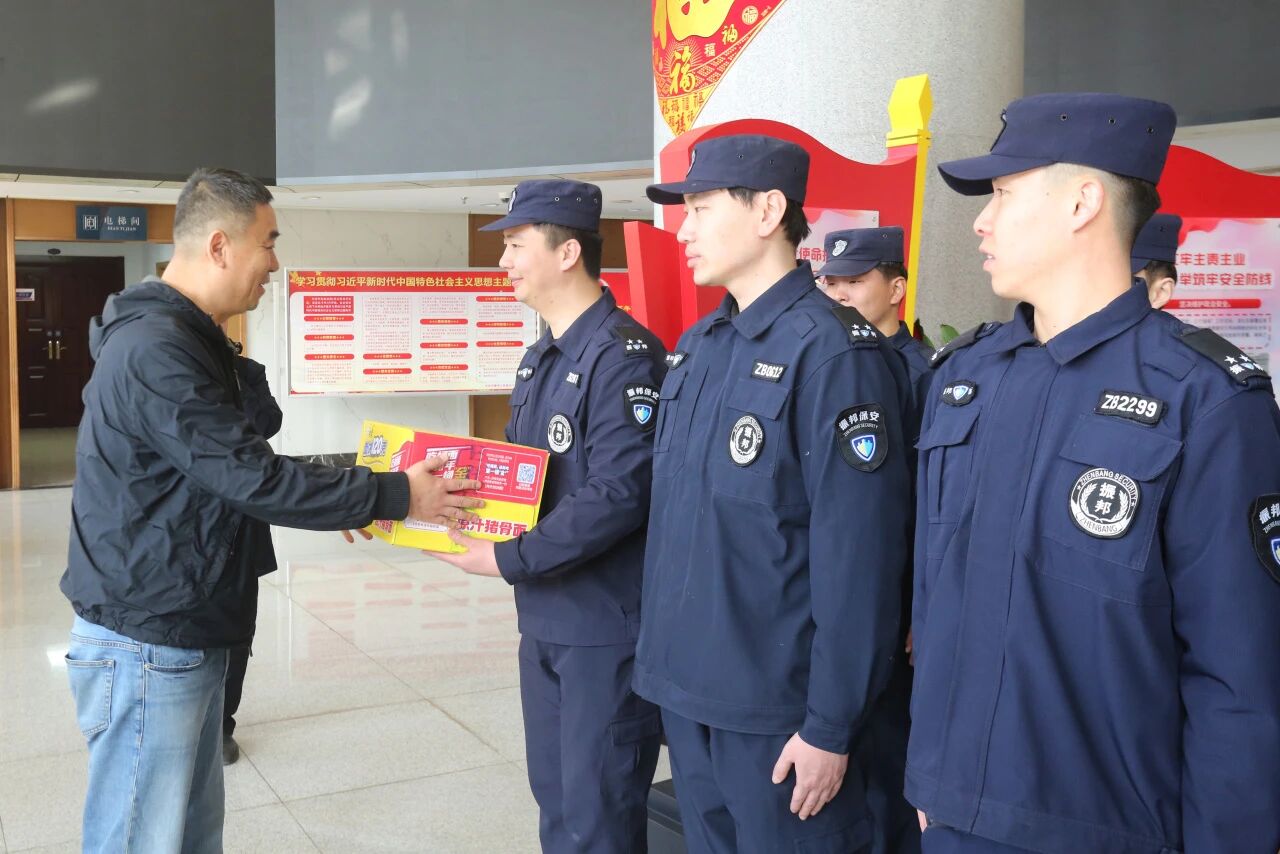 慰问中,他代表集团对大家过去一年取得的成绩表示祝贺,对大家的付出表示感谢。表示在新的一年,希望驻点保安队伍继续贯彻集团“安全为本,服务至上”的企业宗旨,用良好的岗位表现充分体现责任与担当。最后,他给大家拜年,祝福大家在新的一年中身体健康,万事如意。